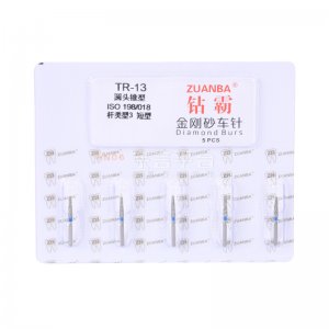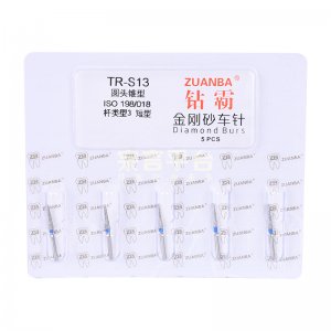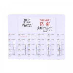 【結構及組成】由車針柄和工作部分組成。其中車針柄由不銹鋼材料制成,工作部分鍍有金剛石顆粒。